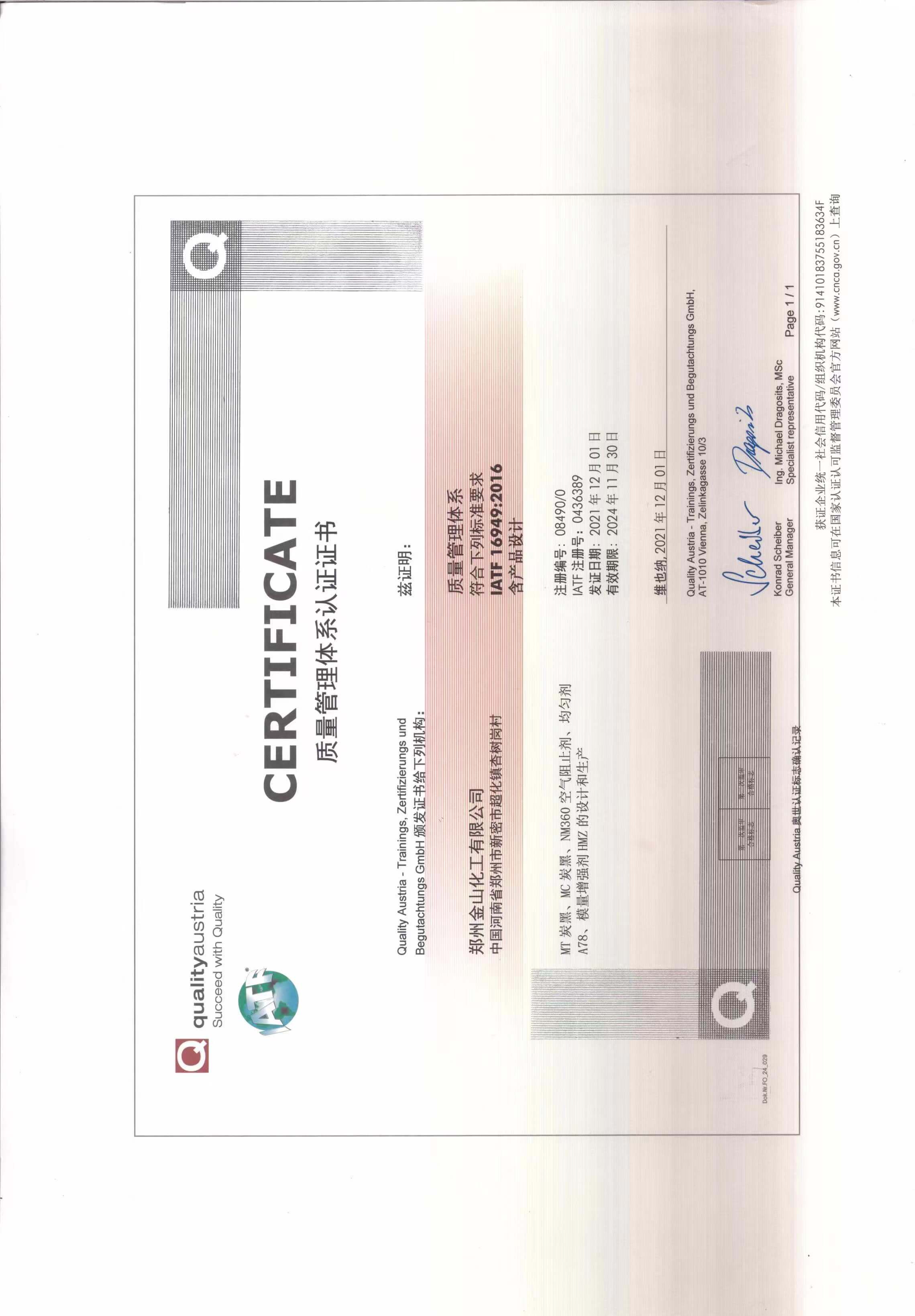 質(zhì)量管理體系認(rèn)證證書